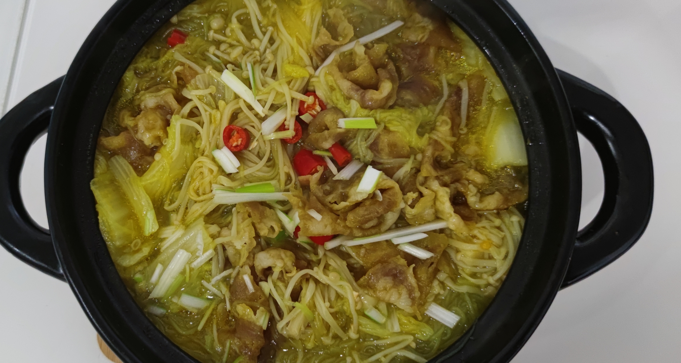 准备的材料:肥牛卷 粉丝 金针菇