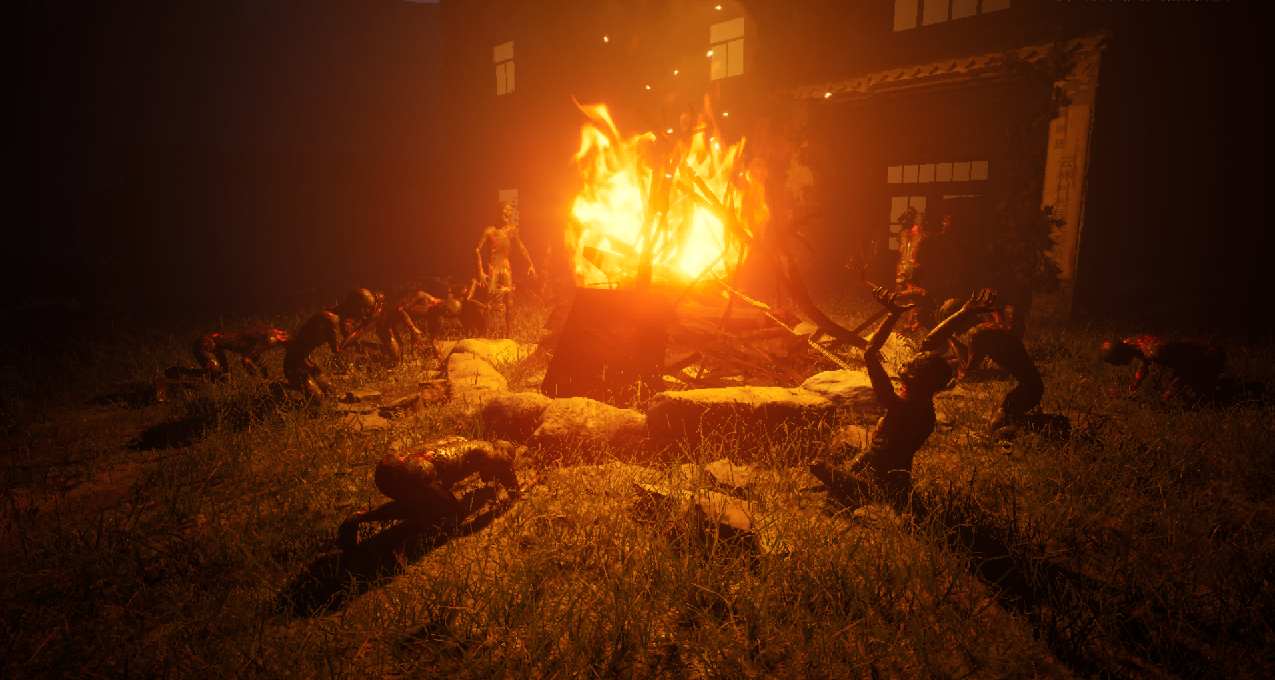 再往前,竟是早已干涸的干尸对着篝火下跪,仿似在进行着一场可怖的祭祀。突然,旁边一具烧焦的尸体,发出最幽怨的声音,这擒住了你的脚步……