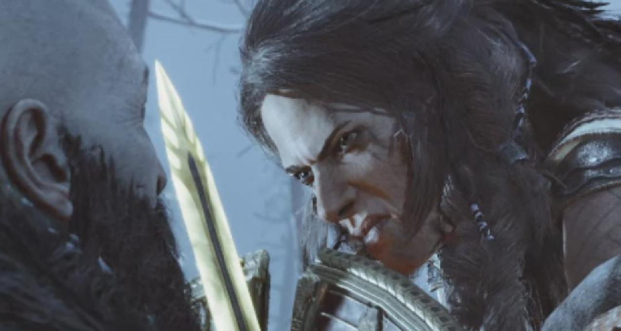 奎托斯完全不想理会这个疯女人,然而芙蕾雅变本加厉,甚至将佩剑插入了奎托斯的左肩,阿特柔斯见状拉弓蓄力,但他也无法伤害曾经那么爱她的芙蕾雅。