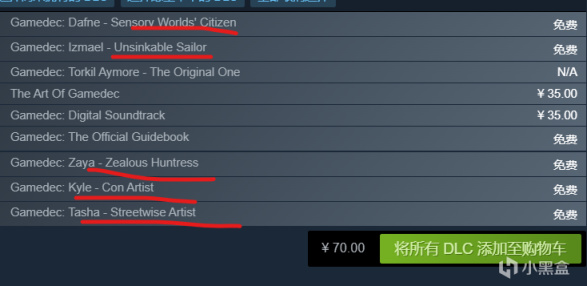 画红线的部分就是五个皮肤DLC,我就不给领取地址了,感兴趣的朋友可以自行去商店看看。