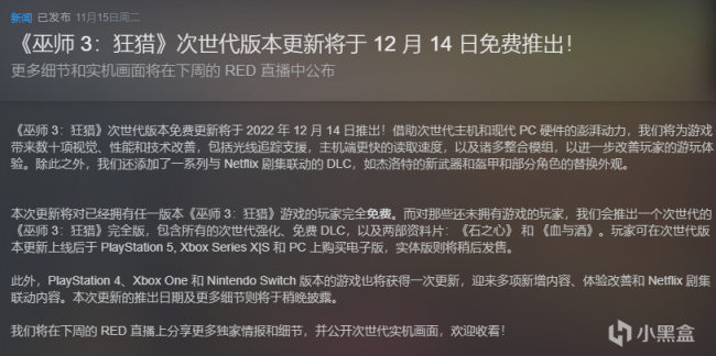 2,巫师3将于12月14日进行免费升级,波兰蠢驴做的好呀!