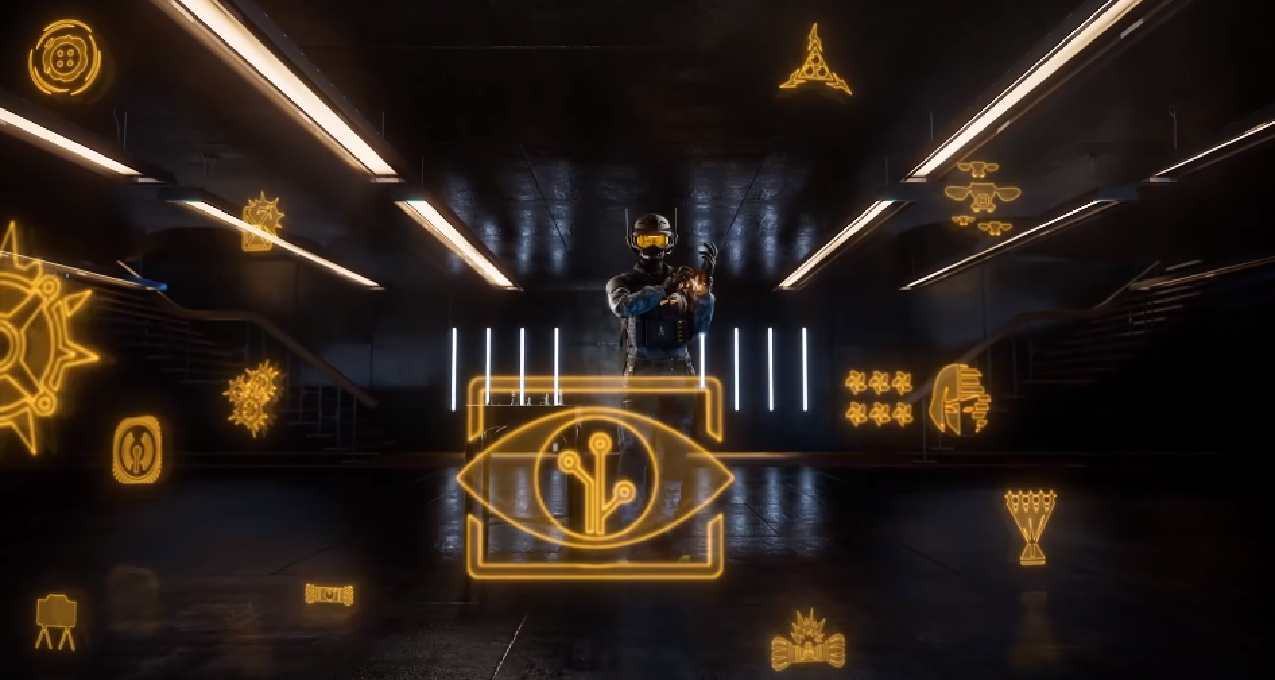通行证转变为了路线图式的升级方式。现在我们可以选择先解锁哪一项物品了,好耶!——虽然到底还是要打满的。图中“木板”图标表示的是锁住的节点,需要“贴片炸药”token来解锁。怎么说呢,R6s经典的拟物化设计,还行,有点意思。