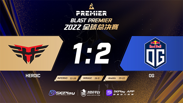 BLAST Premier 2022全球总决赛首日第三场比赛来到了Heroic对阵OG,本次赛事k0nfig替代了stavn上场。图一Heroic的动态防守并不能阻止nexa所布置的战术,以11-16输掉了Inferno。来到图二后,两队的熟练度明显不在一个层级上,Heroic以16-9终结图二。图三阿努比斯上双方互有来回打入加时,最终OG略胜一筹拿下BO3的胜利!
