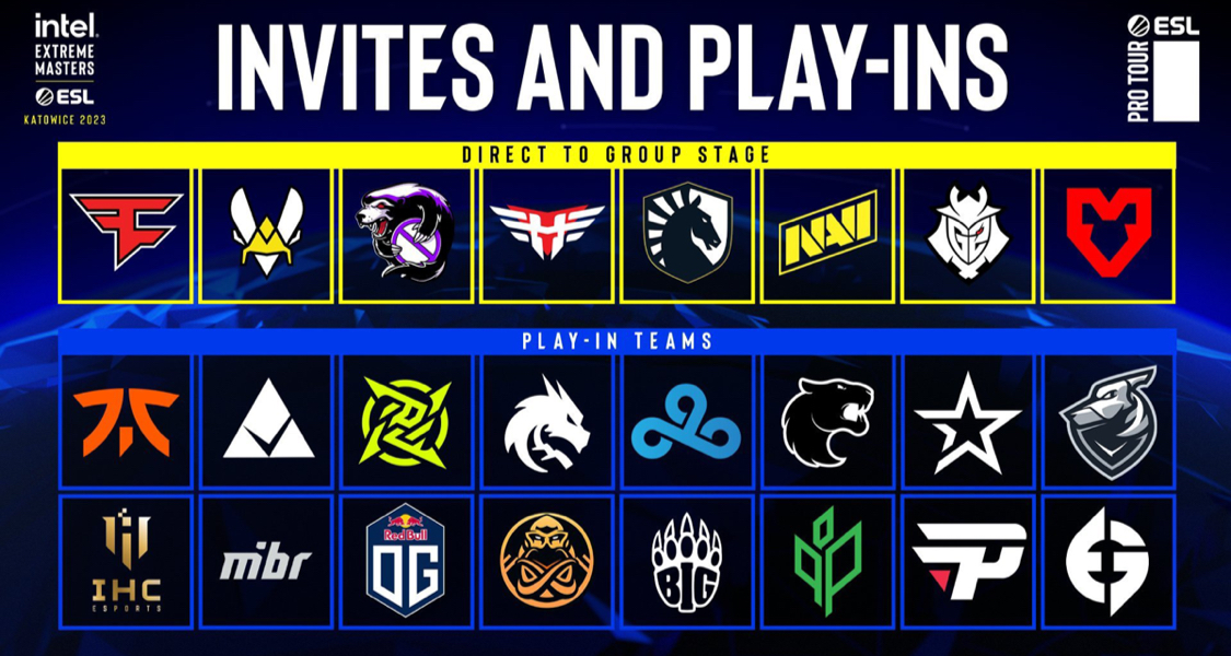 2023年IEM卡托维兹锦标赛24支参赛队伍名单出炉。8支直邀正赛队伍,他们分别是FAZE(IEM科隆冠军)、Vitality(EPL S16冠军)以及VP(IEM里约Major冠军),以及凭借ESL积分排行榜获得直邀名额的Heroic、Liquid、Natus Vincere、MOUZ和G2。