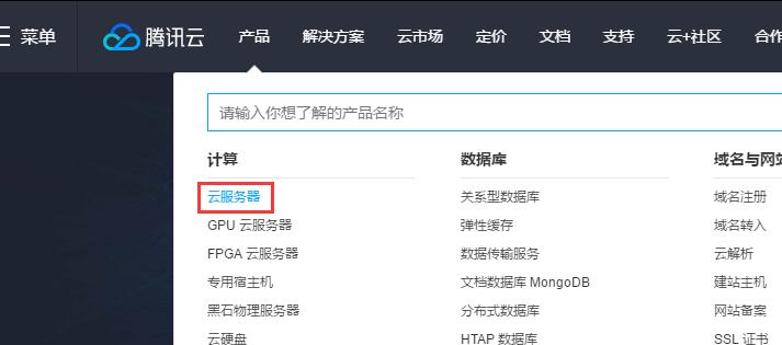 首先选择一家云,这里我用腾讯云演示。打开腾讯云官网,登录后选择产品云服务器。
