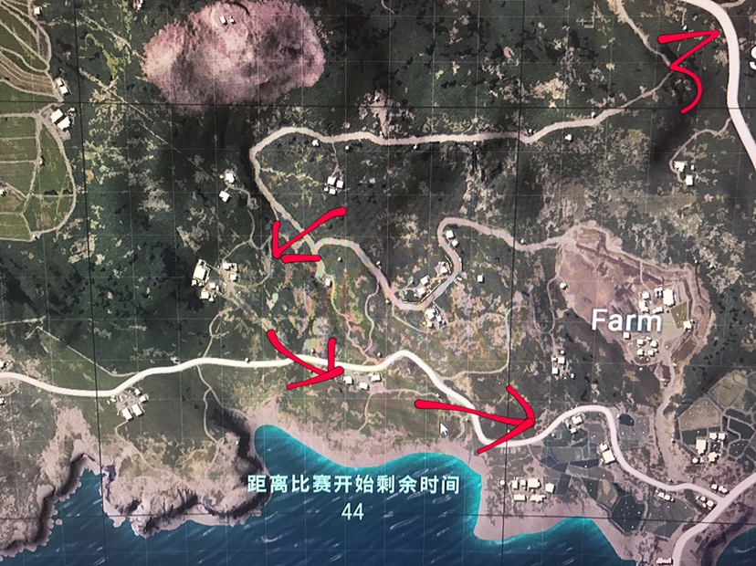 确定好人数后就先清理你们附近的人,跳红点,然后去拿到枪就立刻按着我路线清人。