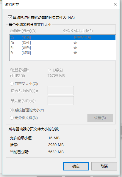 三:关闭虚拟内存 以前绝地刚开始优化不好8G内存不够,就有人推荐说设置虚拟内存到16G 就会解决爆内存的问题。虚拟内存过高是导致后期降帧的重要原因。设置成系统自动管理,如果内存8G不太够的同学可以下个游戏加加开启两分钟自动释放一次内存。