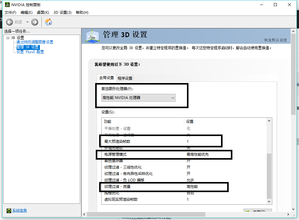 二:电源高性能模式 N卡驱动设置全局独显 大家应该都知道我就不上图了