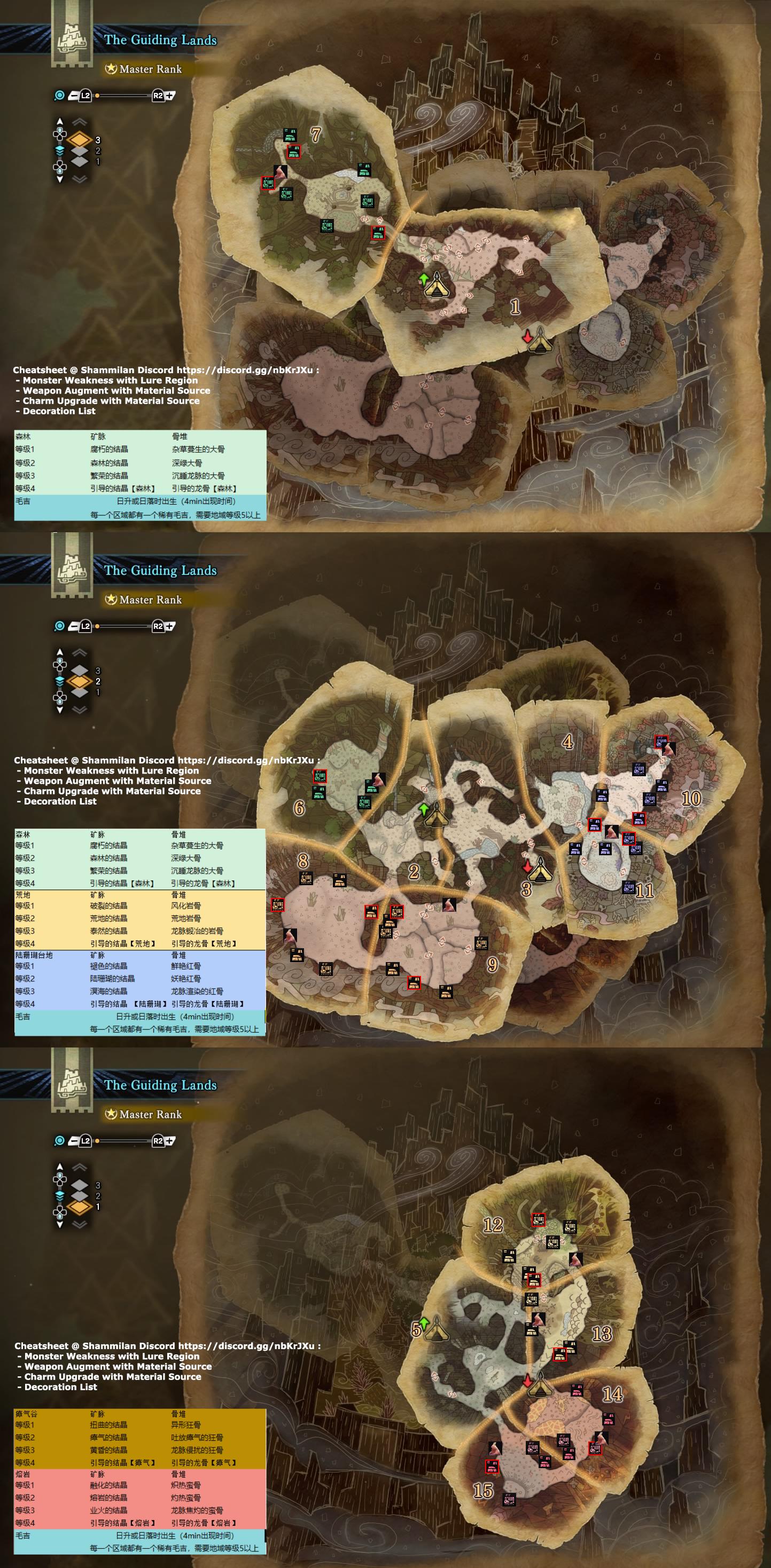 地图分六个区域,每个区域进行采集/杀怪的行为后回帐篷找aibo报告会提升相应的地图等级,解禁后最高可以到4级,总共7级,提升地图等级上限和mr等条件有关,MR49后完成任务<惰眠与火酒的日子>解禁5级。MR69后完成任务<贯彻武道家魂!!>解锁6级。MR99后完成任务<与心爱的你行至世界尽头>解锁7级。