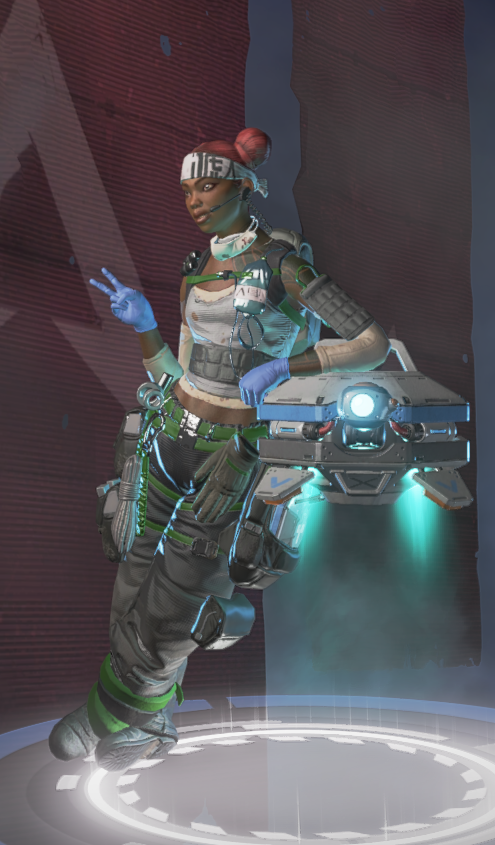 中距离交战,命脉不要作为拉枪线的一员,紧跟队友,处于随时支援的位置。命脉的优势即是依靠被动技能,在救助队友的同时腾出手来进行防御。在rush距离不够的中距离作战中,若倒下的队友并未暴露在敌方火力之下,可直接部署治疗无人机对其进行救治。相比于手动拉人,命脉的被动能将拉人造成的火力空窗降到最低。