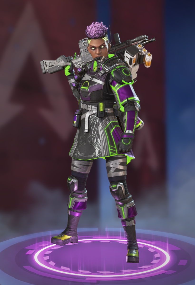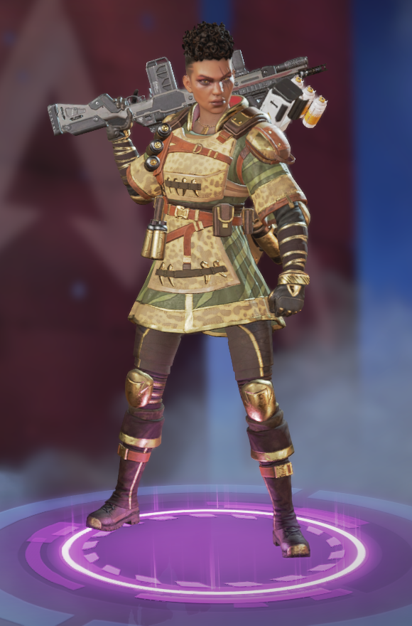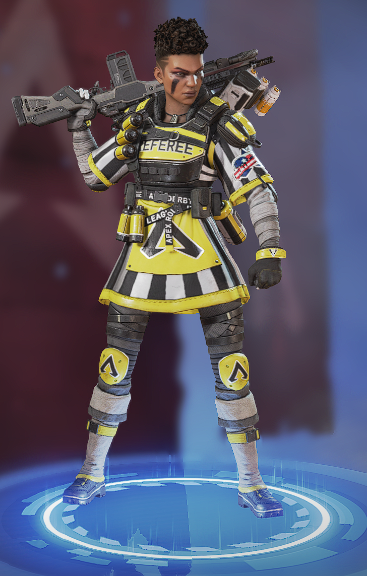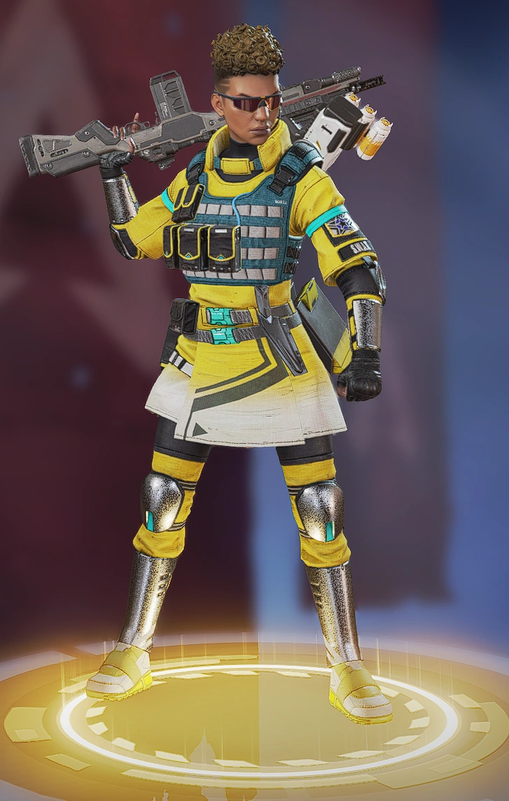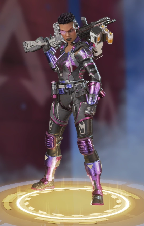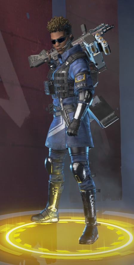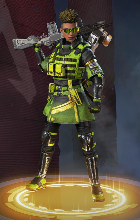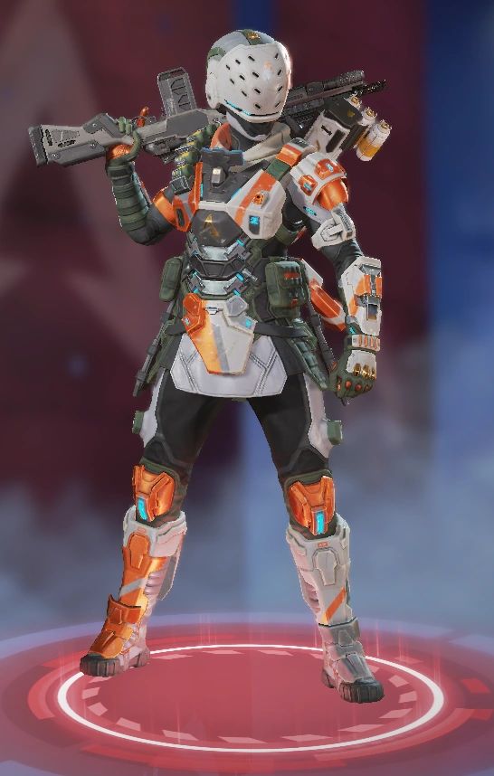 她的烟雾发射器可以储存两发,释放后在撞击时爆炸形成烟墙,类似于各类射击游戏的烟雾弹,她的主动技能可以说作用很大。她的绝招跟直布罗陀的很像,战略的意义大于对敌方造成伤害,封锁一片区域十分有效,大招会造成严重的减速及视线模糊,友方只会承担减速和模糊的效果,在敌人被班加罗尔大招控制时,仍可主动进攻取得优势。