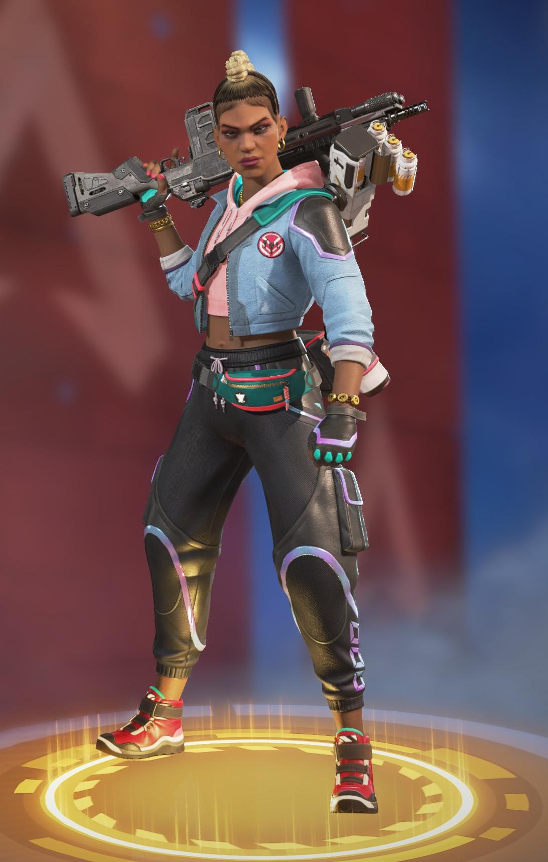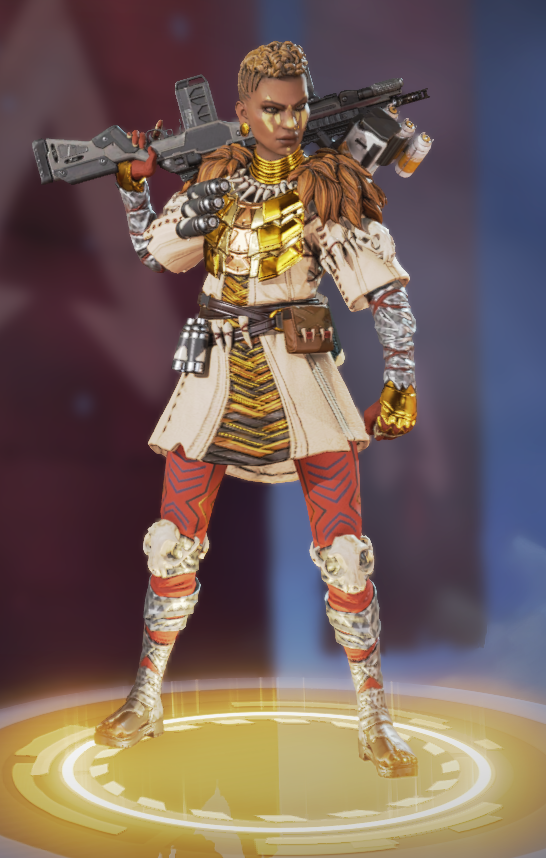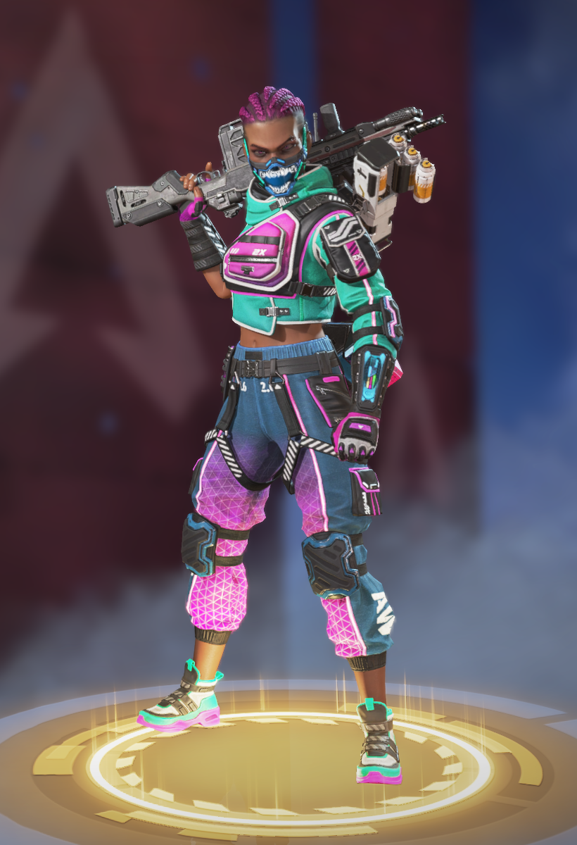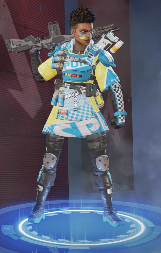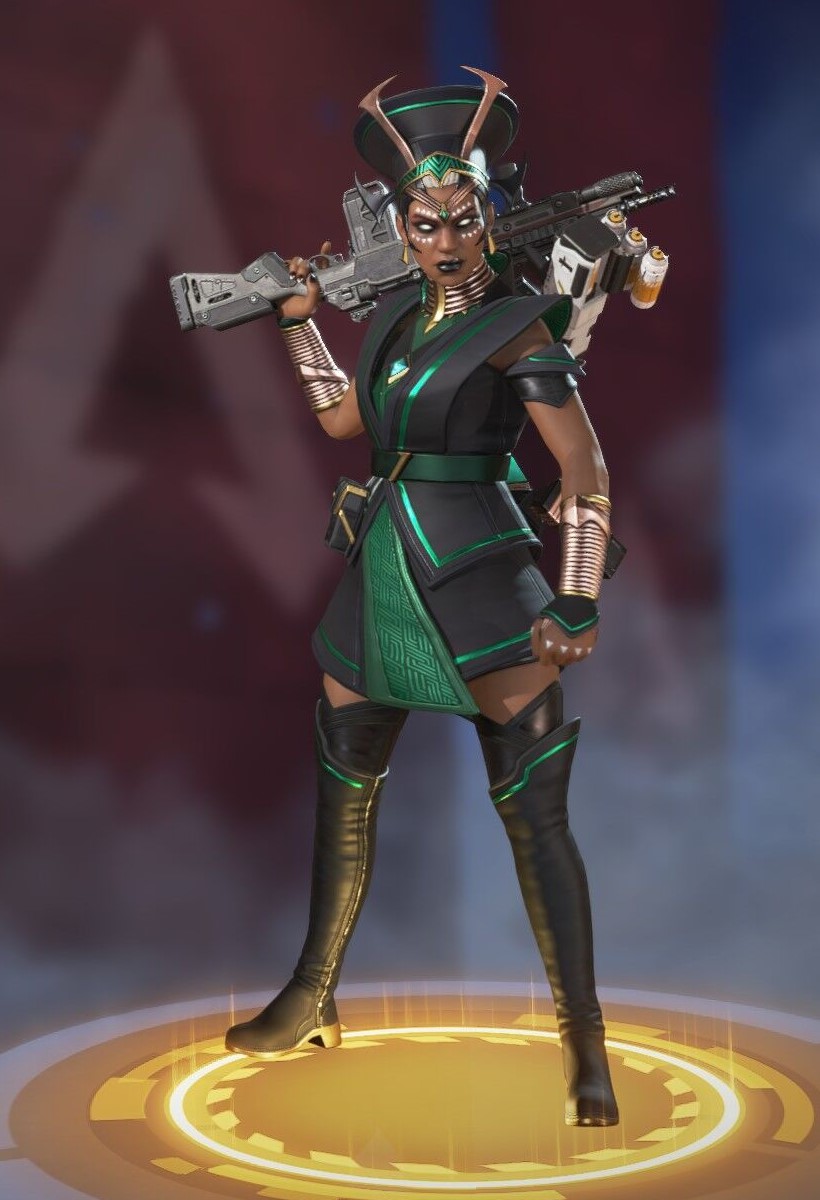 她的烟雾发射器可以储存两发,释放后在撞击时爆炸形成烟墙,类似于各类射击游戏的烟雾弹,她的主动技能可以说作用很大。她的绝招跟直布罗陀的很像,战略的意义大于对敌方造成伤害,封锁一片区域十分有效,大招会造成严重的减速及视线模糊,友方只会承担减速和模糊的效果,在敌人被班加罗尔大招控制时,仍可主动进攻取得优势。