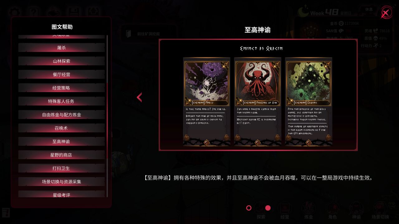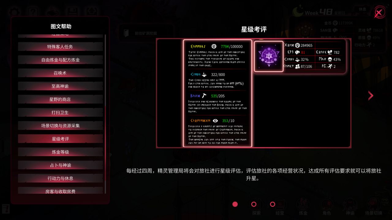 当然,也有一些与现版本内容不同的地方,如 [至高]多产 为每个房间入住人数+3,但会每日掉SAN;旅社评级要求清洁度≥800等。