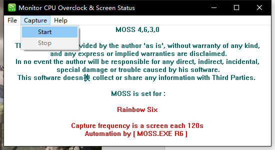 7.保持MOSS运行下,等您的比赛结束后点击Capture选项下的Stop再退出游戏即可。