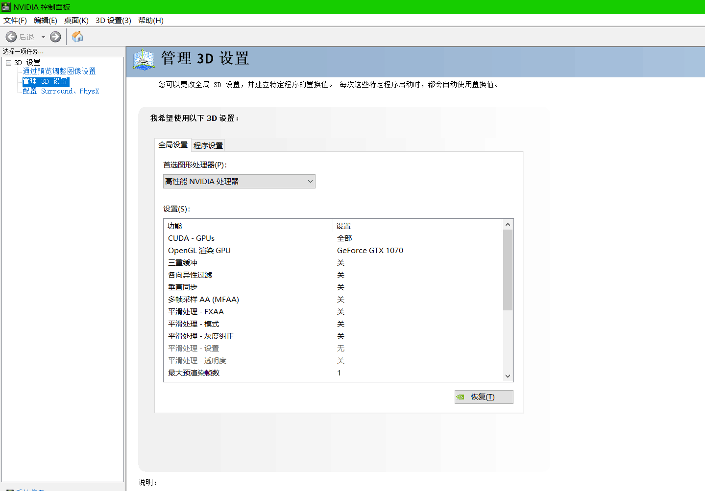 英伟达显卡3D设置,主要是用于玩大型3D游戏的,所以非常重要。