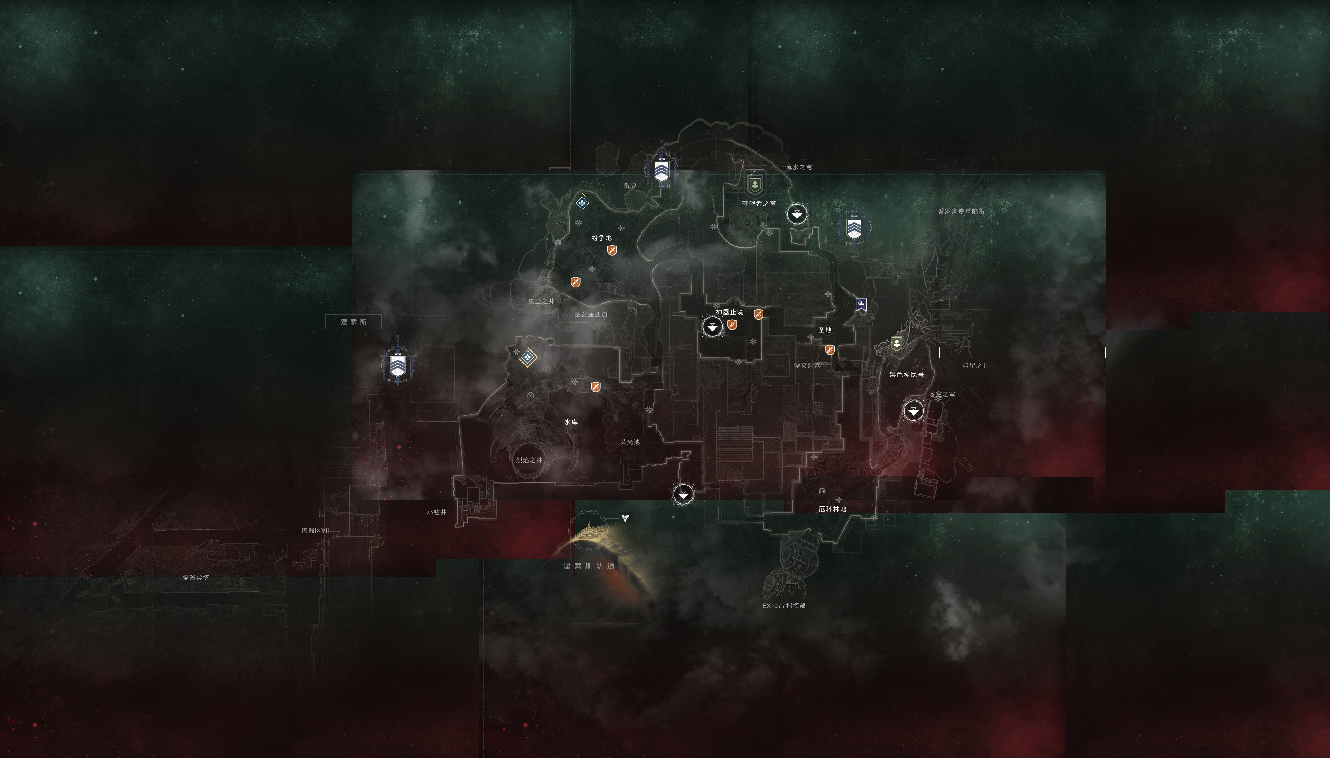 - 着陆点:黑色移民号,守望者之墓,神器止境,水库