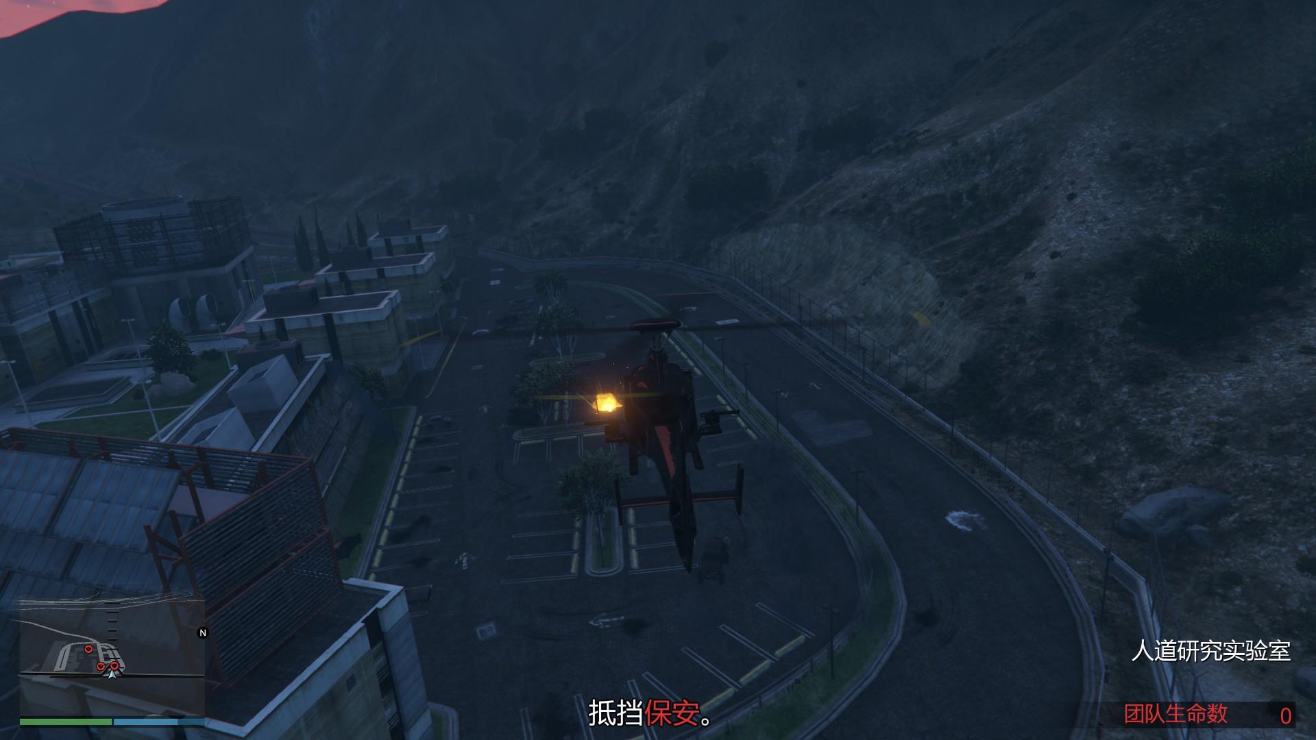 地面组进去人道实验室后在附近低空盘旋把来支援的NPC车