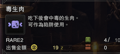 毒生肉就算给累积了1W点累计值的魔物吃了也没多大用,所以了解一下就好了,而且怪物都忙着揍你了哪还有时间给你吃肉,第一阶段还能用一下的东西。