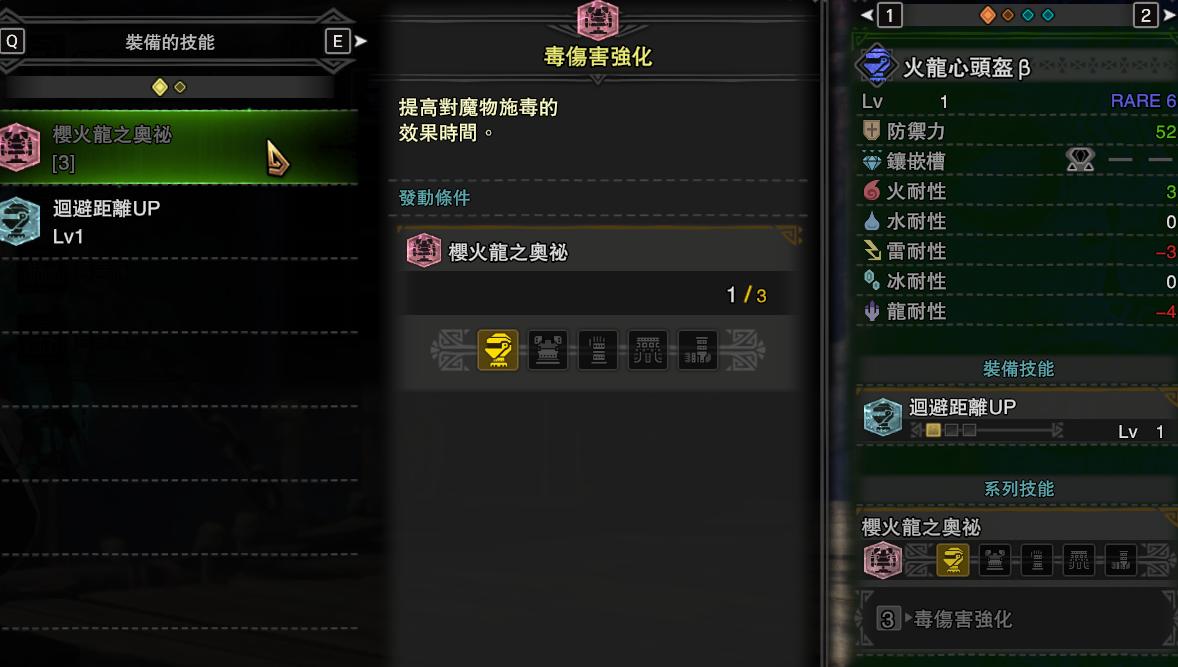 防具上,目前只有樱火龙衍生里存在【毒属性强化】这个3件套效果: