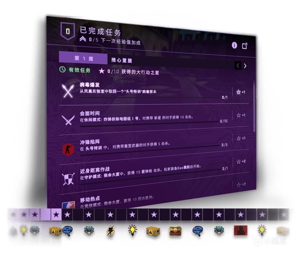 每周都有新的任务,通过完成任务获得星星以获得大行动奖励,这也是V社首次以此发放大行动奖励。