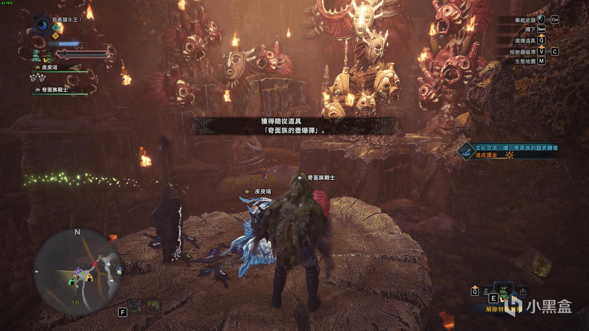 进去一定要穿隐身衣,路上有奇面族放哨,之后有一个洞口可以进去,里面有奇面族长老,和他对话获得随从道具【奇面族的壶爆弹】