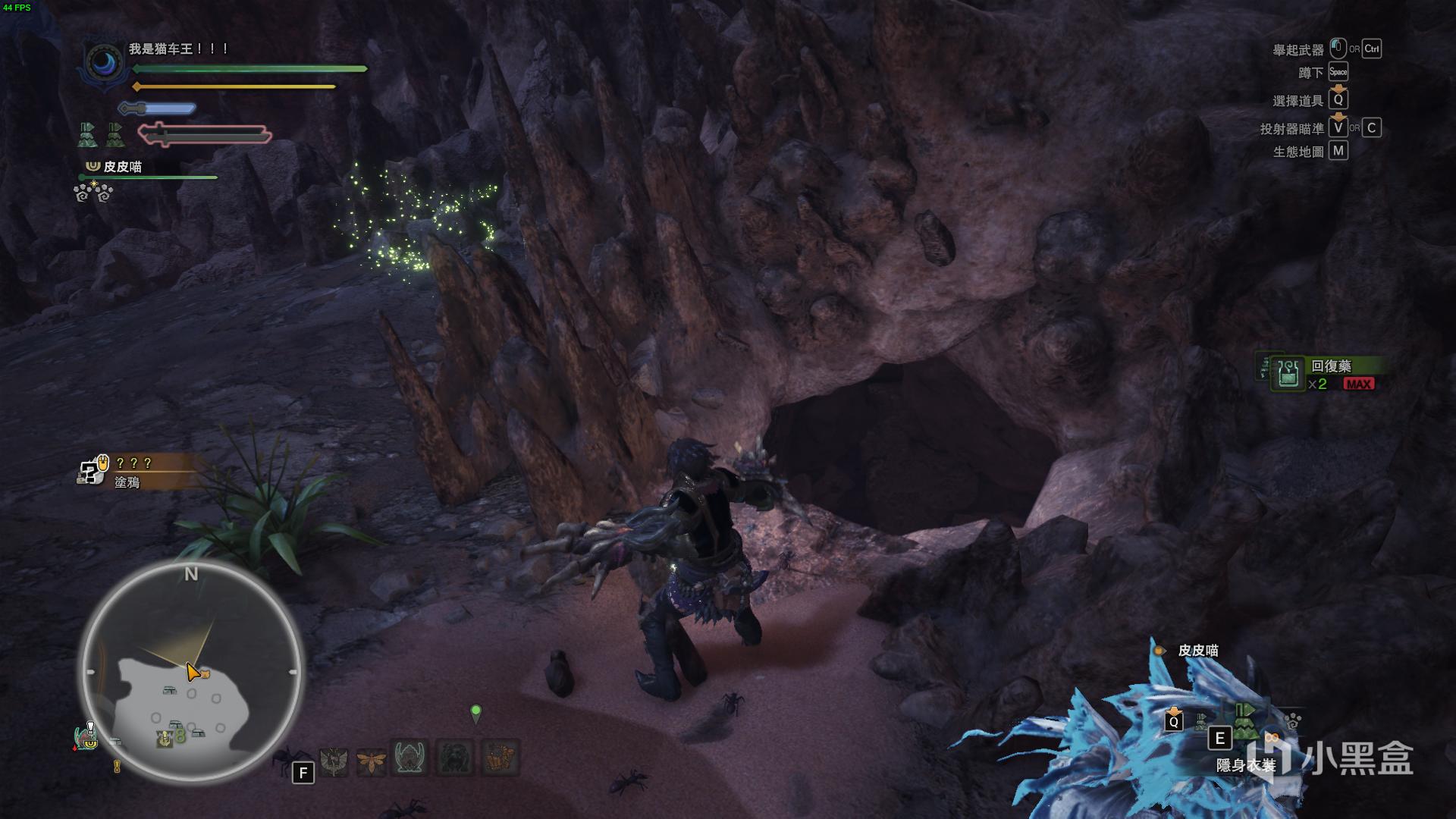 进入荒地之后。地图的8号区域有一个洞穴,洞口有一颗药草,标记药草跟着道虫过去