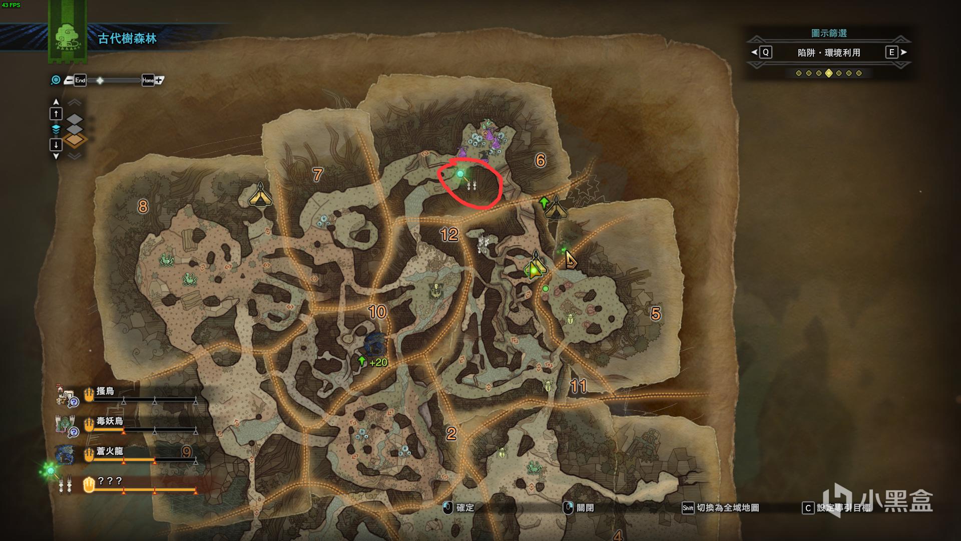 进入古代书森林之后打开地图,右上角有一个筛选功能,切换到陷阱环境利用选项,此时地图6号区域会出现一个德特尔,按C键开启道虫导航