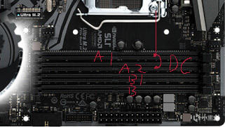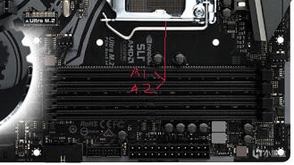 当你只插在A1 A2,B1 B2挥着插满时性能会有所下降(2DPC),主要是因为信号线长的损失。