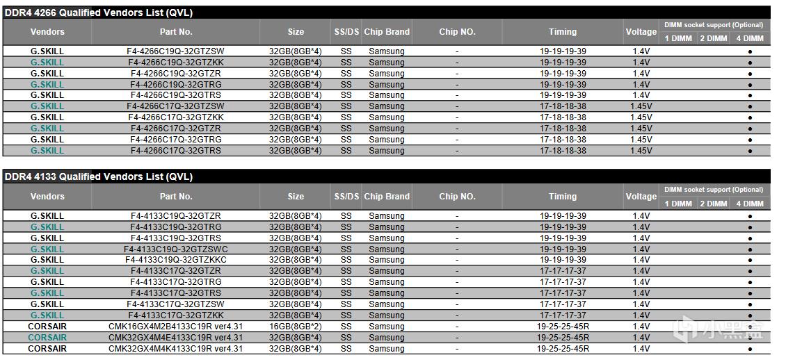 简单的证据就是你去看华硕Z390的官方QVL(图我也放在下面几乎都是8*4),很多高频内存需要4根。那么为什么需要4根呢,因为当两边都有ODT的时候2个信号都是完整的可以防止讯号反射,因此都可以完整信号。