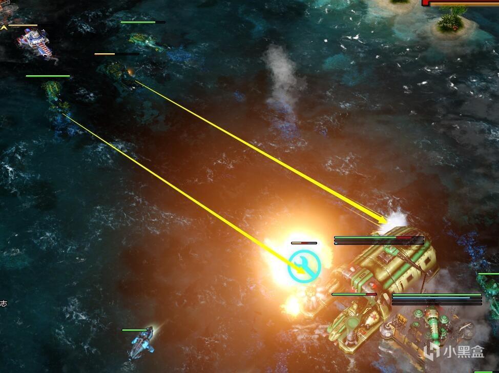 另外,当被水翼船干扰光线干扰时,通过S 或右击移动来撤销攻击指令,能让你的阿库拉更快下沉躲闪,然后再发射超级鱼雷,或者是不会被干扰的第一法普通鱼雷来摧毁水翼船。