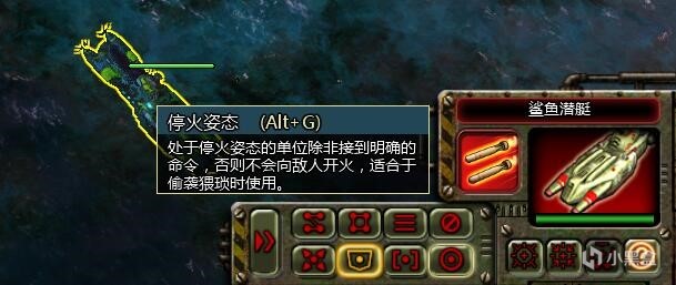 另外,为了避免潜艇攻击某些单位而自行露出水面,你可以在面板中将阿库拉设置为停火模式,快捷键alt+G