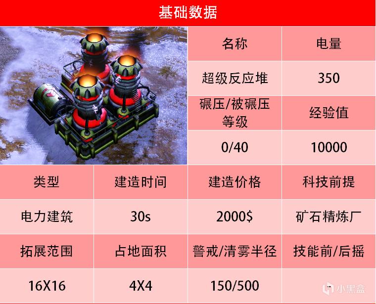 超级反应堆除了供给大量电力外,也可视为苏联的T2科技解锁建筑。建造完超级反应堆,就解锁磁暴线圈、磁暴步兵、铁锤坦克、苏联机场、战斗研究所和阿库拉潜艇的生产建造权限。