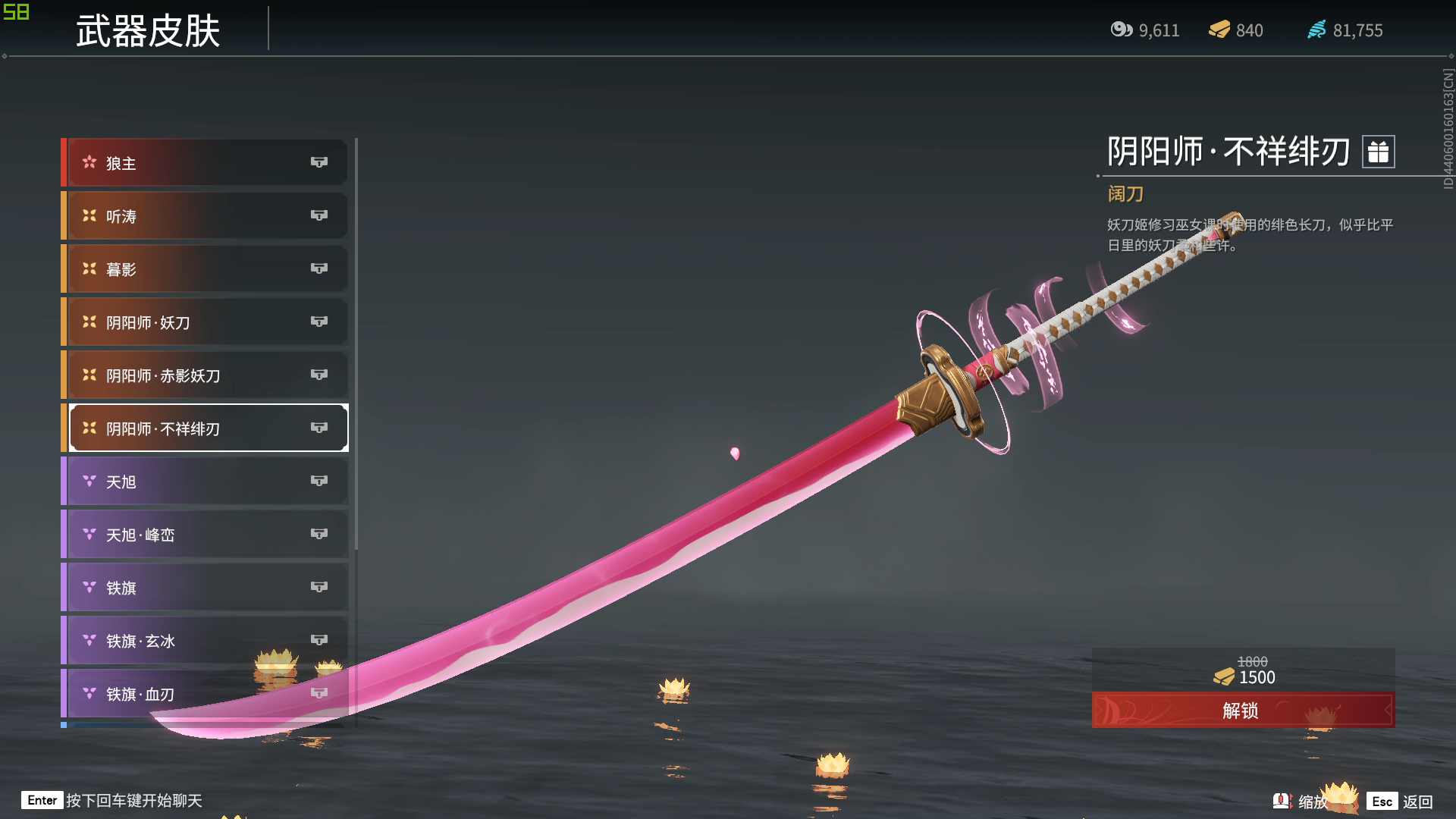 阴阳师·不祥绯刃 1800金砖(打折1500)