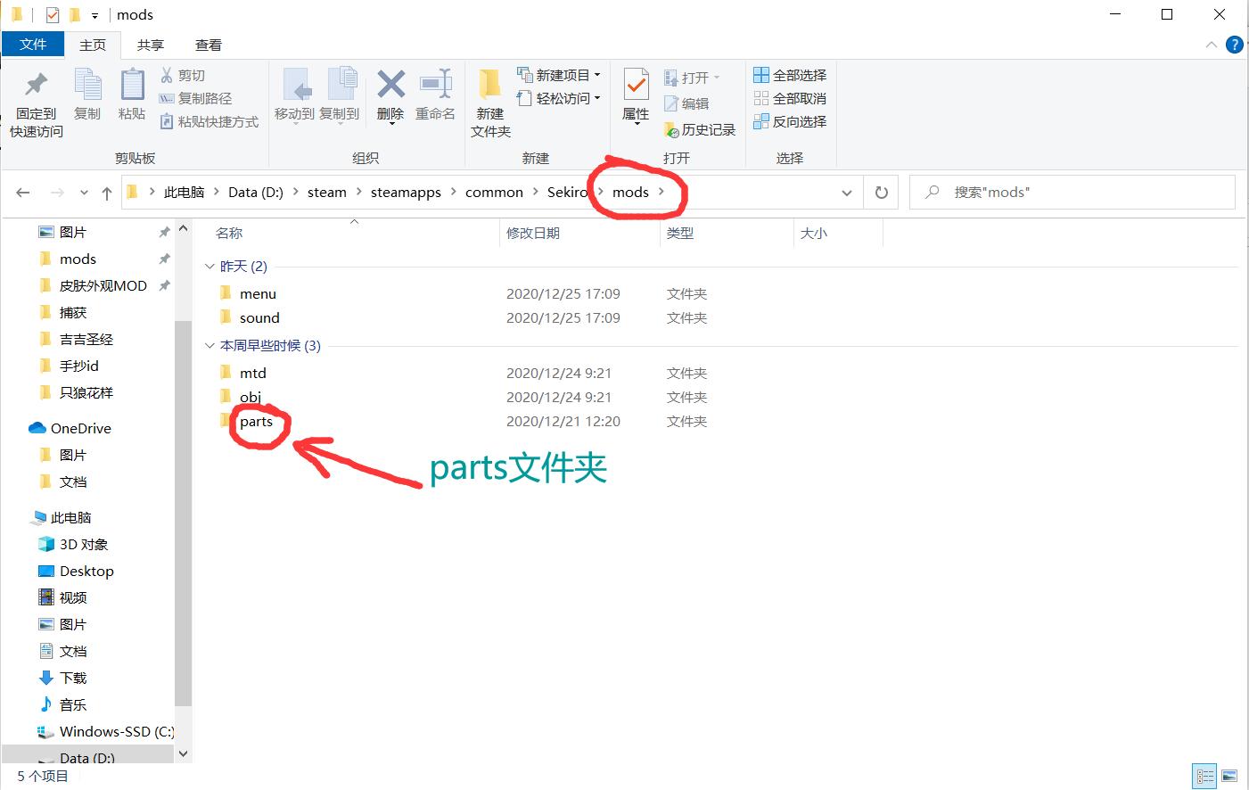 我们直接把parts文件夹放到mods文件夹里面就行了