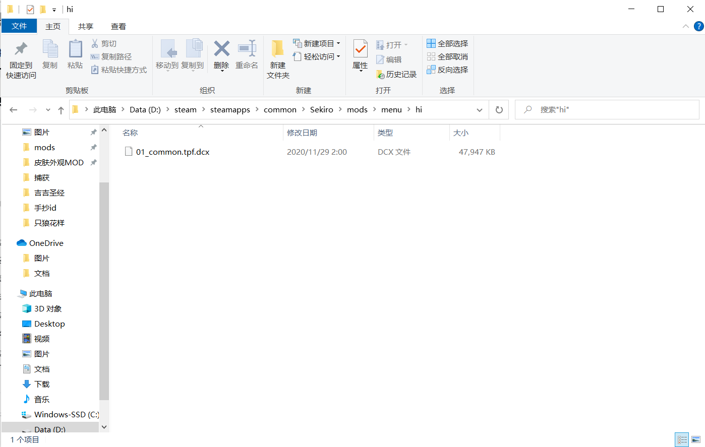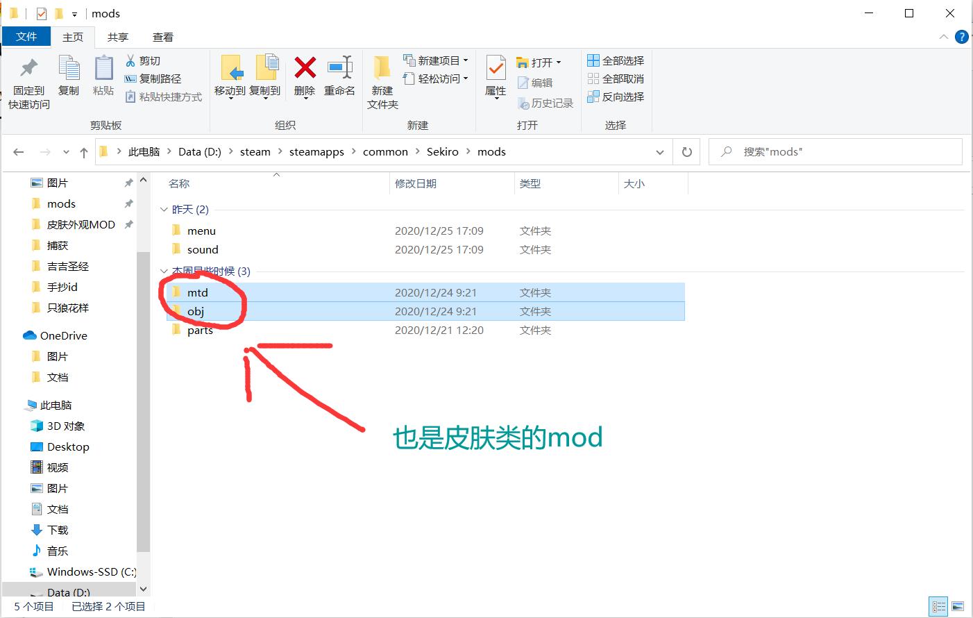 于此同时,有皮肤类的mod也可能会涉及到“mtd”和“obj”这两个文件夹,这两个文件夹所负责的也是皮肤类的mod,但一般是只狼身上的盔甲之类的,例如弦一郎皮肤身上的弓箭。但是基本来讲很少有皮肤类mod会用到这两个文件夹