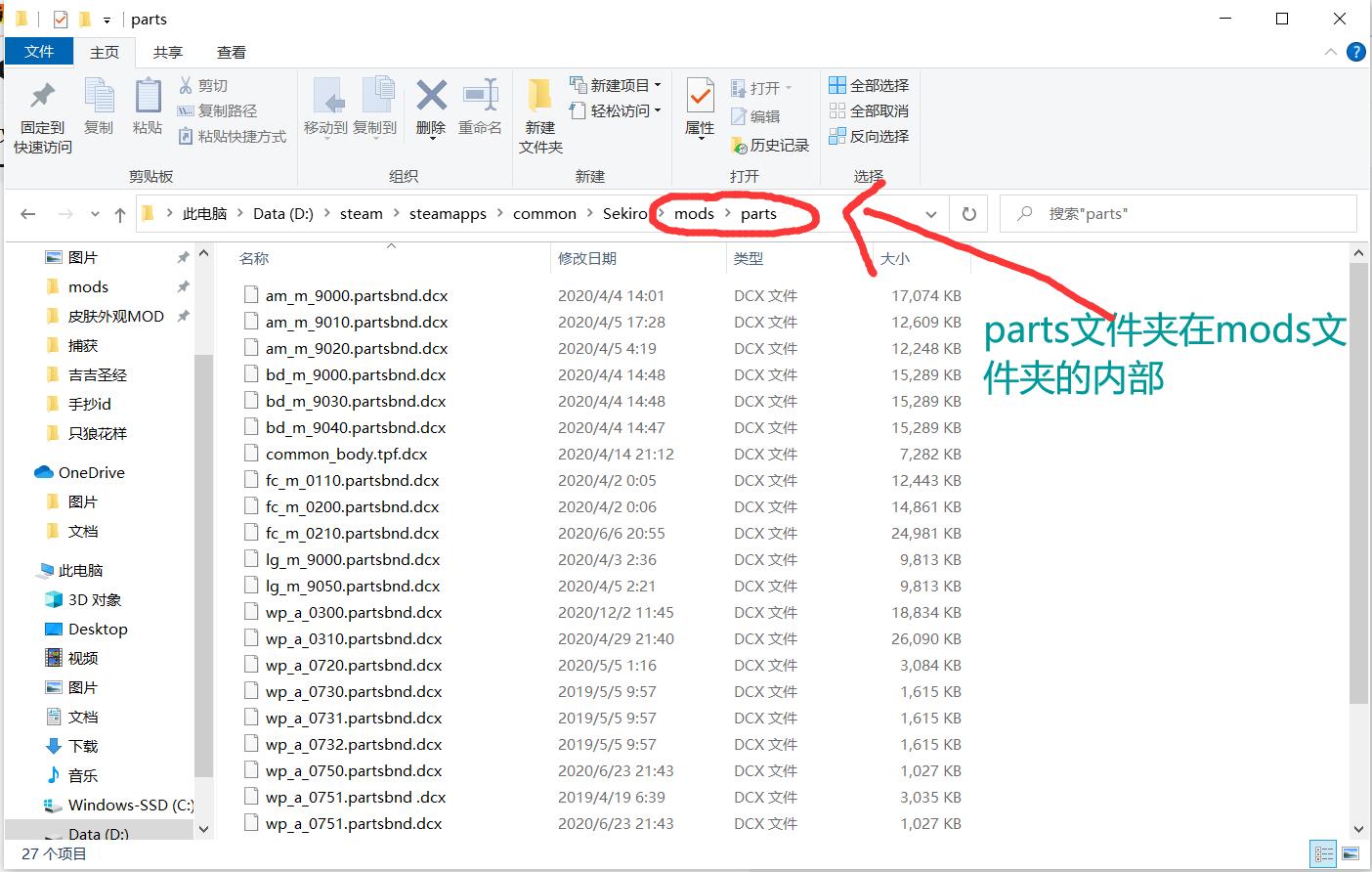 也就是替换自身皮肤的mod,这类mod我们一般是放在“mods”文件下面的一个名为“parts”的文件夹里。