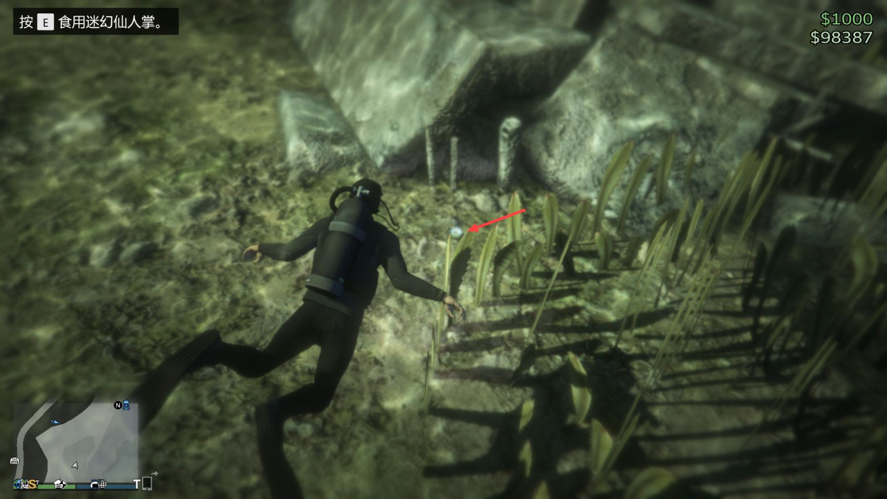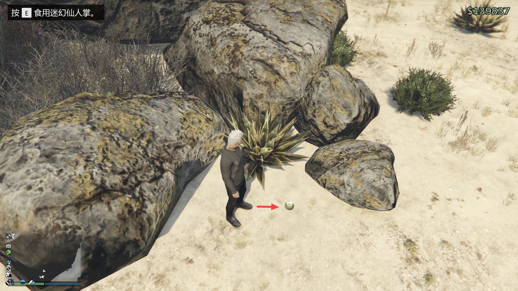 找到隐藏在各处的迷幻仙人掌,吃下1个即可获得5K经验。吃下后可变成各种水生动物、陆地动物或者鸟类(变身规律与仙人掌所处位置有关,其中有两个固定点位可以变成小查和野人)