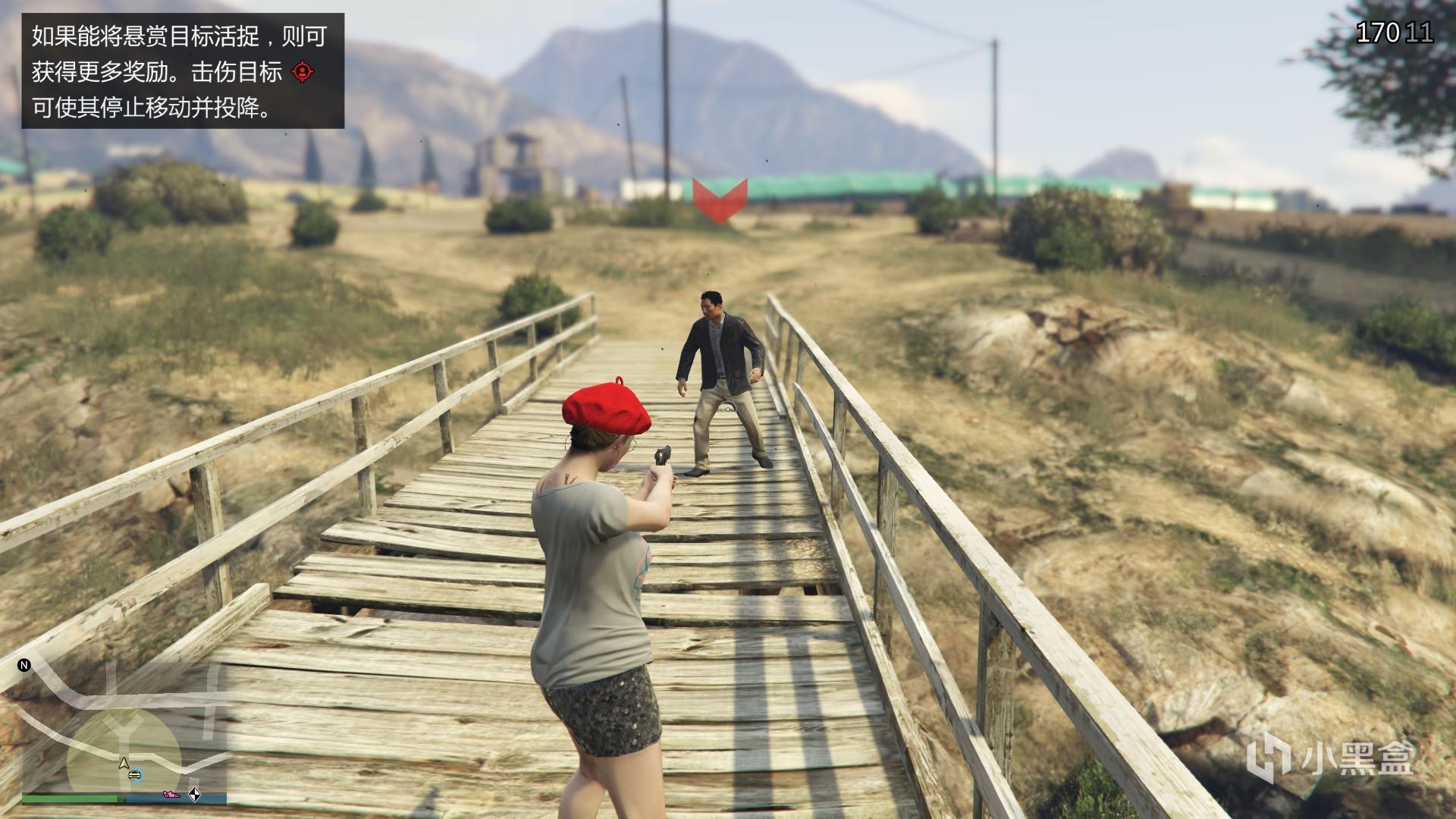 如果你不赶时间,我建议是活抓目标。造成的非致命性伤害足够多后(系统会提示逃犯已投降),逃犯就会投降并跟着玩家一起走,如果你进入可搭载多人的交通工具他也会跟着上来。等他投降后,开车或者飞机带去茉德处交人领钱就行。