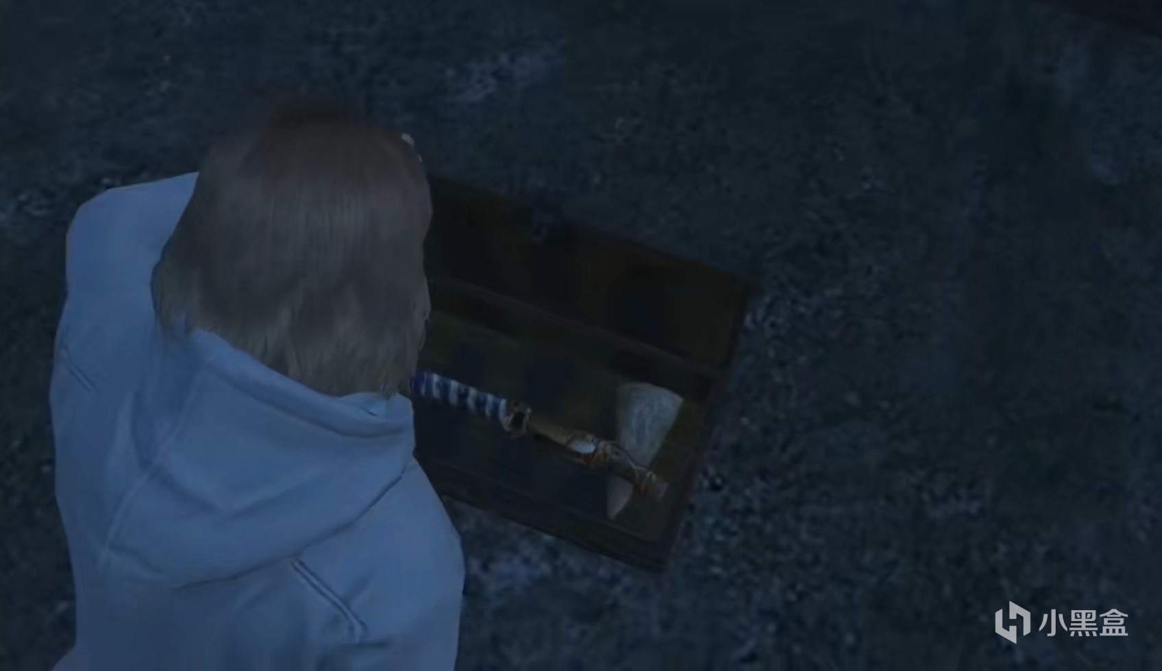 达到系统给定的位置,能找到一个箱子,打开可以看到里面有一把石头材质的斧子