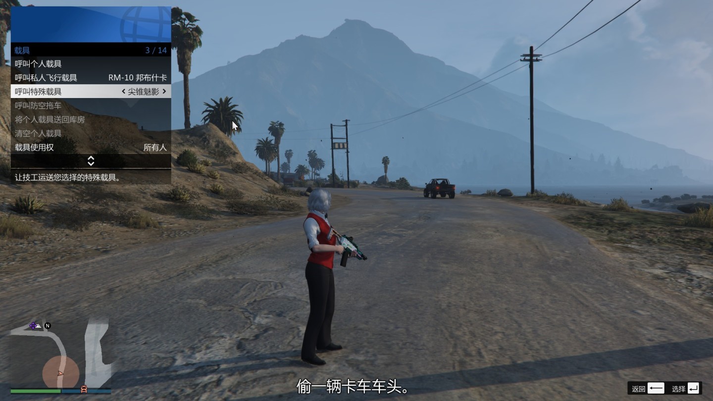 我们需要把自己的尖锥魅影/偷来的卡车车头、尖锥魅影存放在沙漠地区的指定车位备用,有条件的可以先使用飞行载具过来再呼叫尖锥魅影