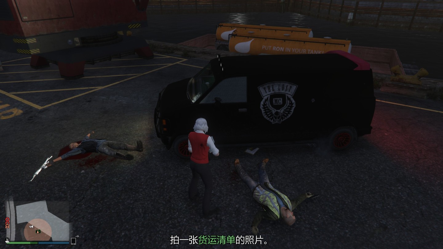 打死工头的位置附近会掉落货运清单,例如我这里就掉在了摩托帮屌客下面
