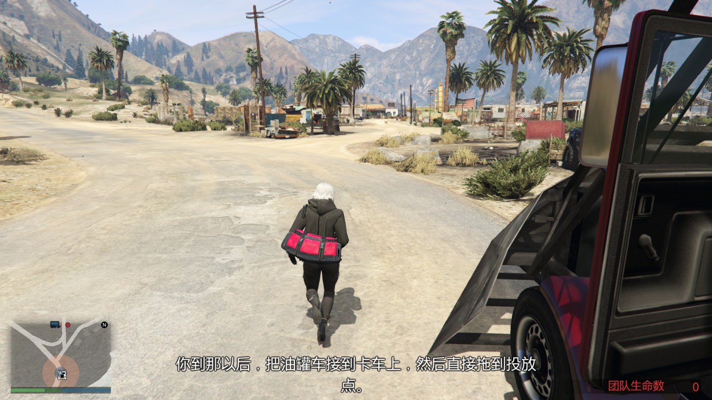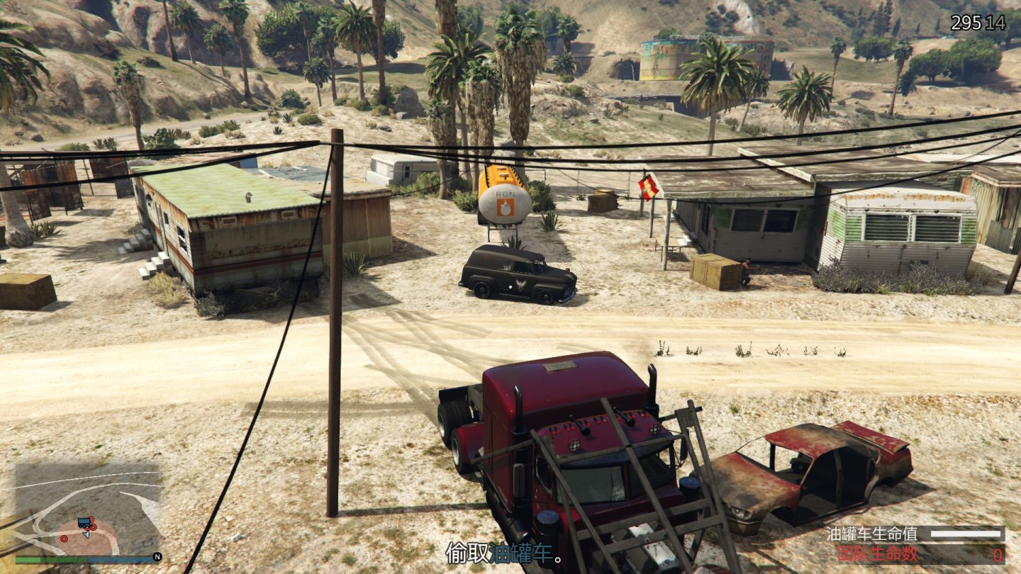 货车连接上油罐车后直接拖着走就行,路上会刷出骑着摩托车、驾驶皮卡的敌人,直接撞开前面的就行,来自车尾的可以用枪解决