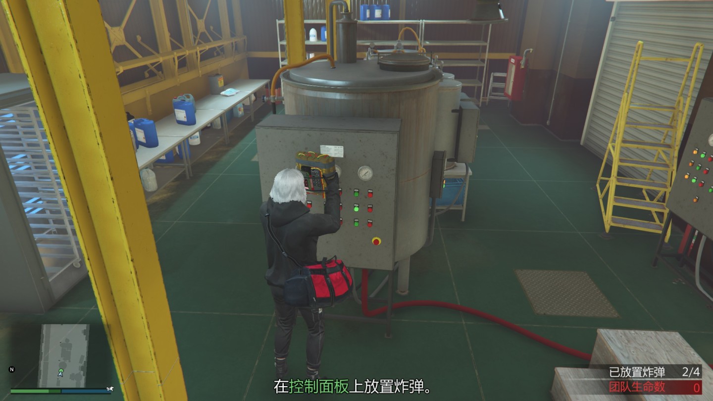 在发生化学反应的高炉上安装炸药并在三十秒内离开即可。出门后外面可能已经站着不少架着枪的摩托帮成员,小心别当场暴毙