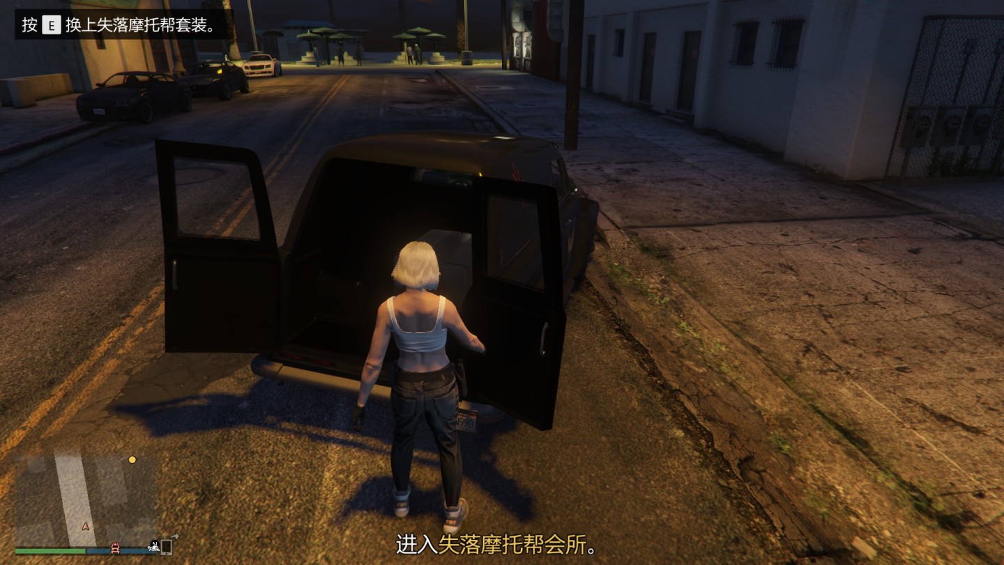 到达会所门外后,摩托帮皮卡的尾门自动开启,下车去换装即可