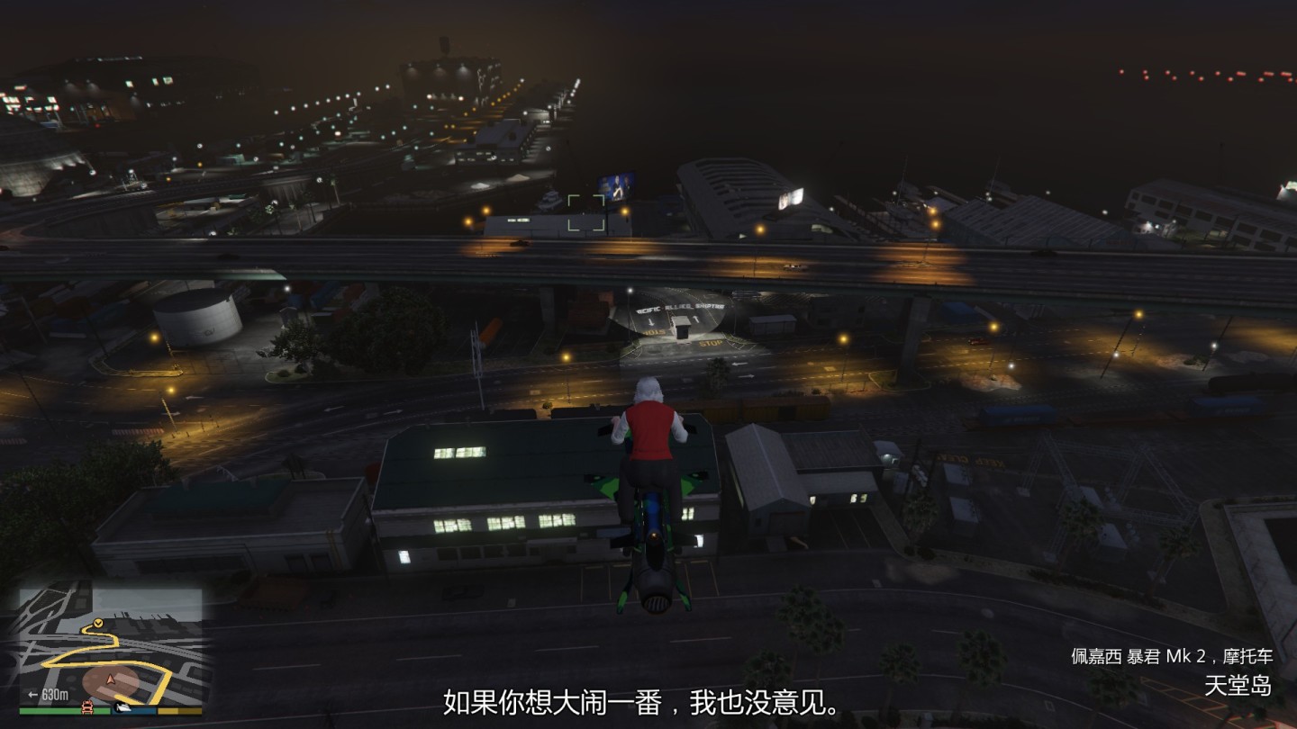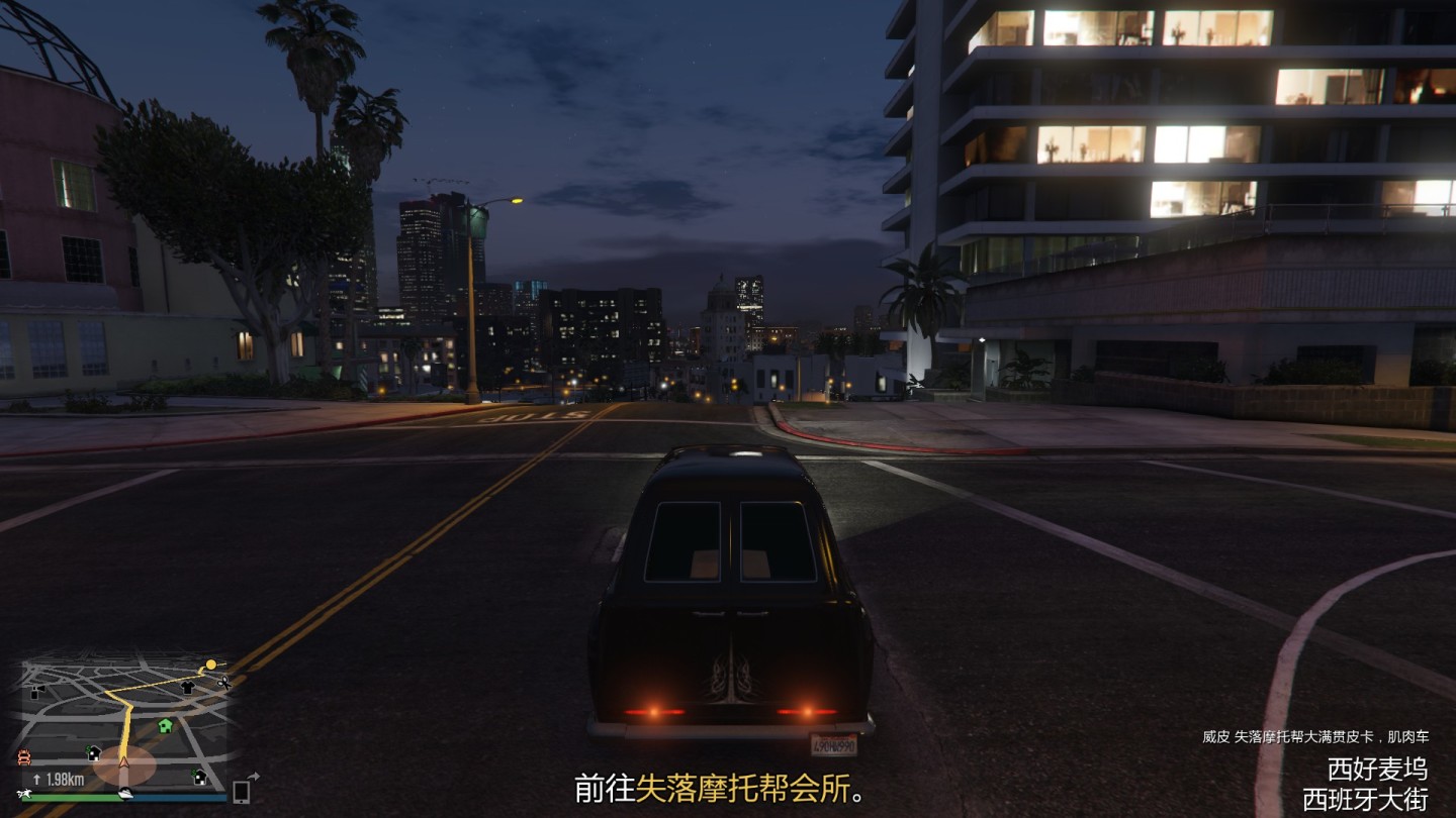 取走装备和文件后马上回个人改装铺就行,路上会刷出很多驾驶着摩托车的摩托帮成员,不过问题不大,跑就完事了
