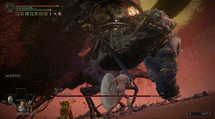 因boss武器较大,所以攻击范围很大,侧面翻滚很难躲避,可以向后翻滚躲闪,也可以向前翻滚,在boss头前面下砸是打不到你的,可以趁机砍上两刀11.踩踏:boss踩地并且在地面搓动