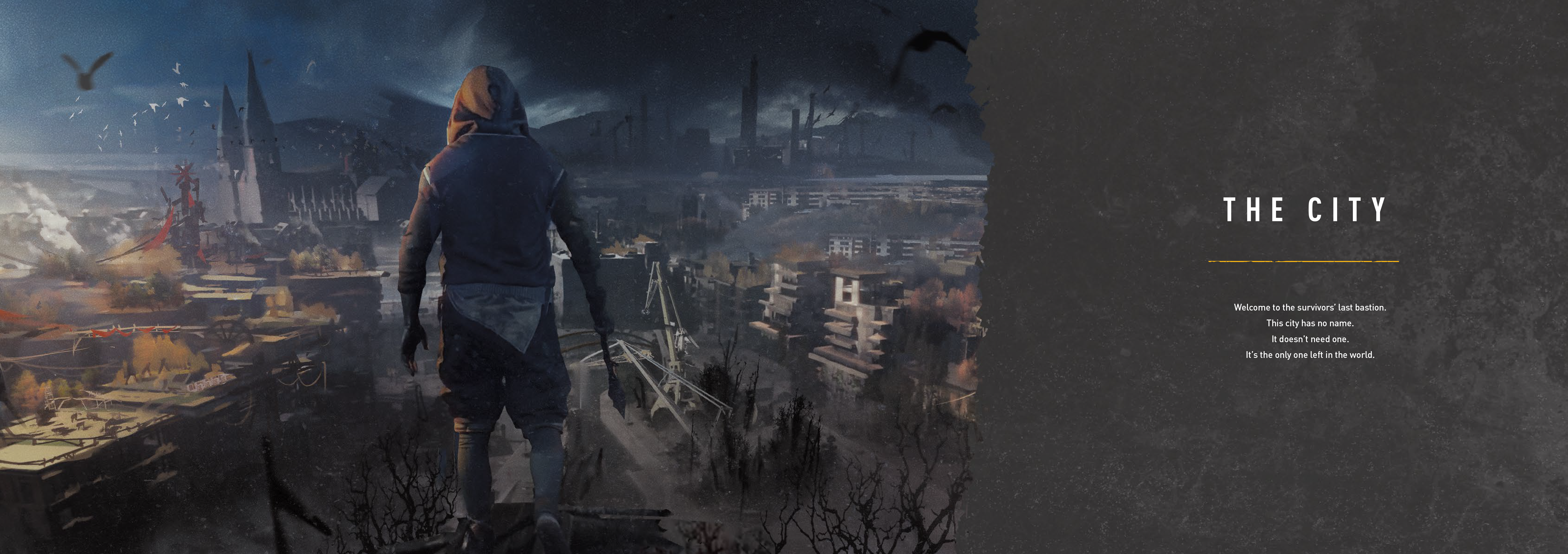 消逝的光芒 2 当前时间是一代 20 年后,文明普遍退化的 15 年后。城市内部情况比之 前的哈兰市还要糟糕。城市中到处都是破旧的街道,年久失修的建筑以及正在锈蚀的车辆。连接城市的轻轨地铁,以及高速公路以及部分损坏。许多建筑长满杂草,大部分城区因为洪水和黑色星期一投下的化学物质(黄色的化学物质站上去免疫力大幅下降)而不能居住, 这些导致街道之间相互孤立,只能通过剩下还可以正常运转的地铁系统通行