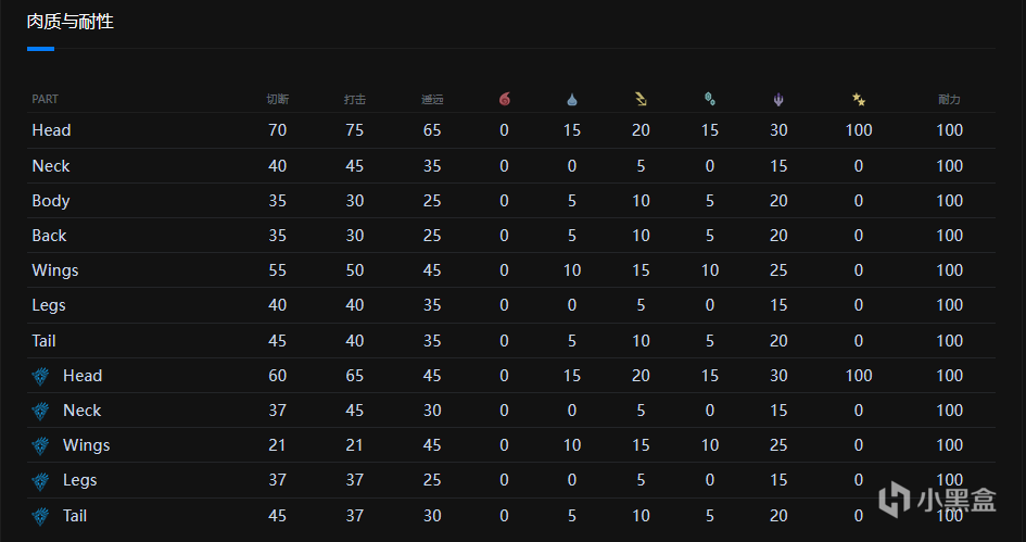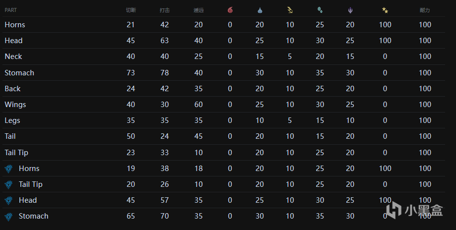 值得一提的是,黑角龙和角龙的抗性在MHW中也有区别,尤其是对龙属性的抗性
