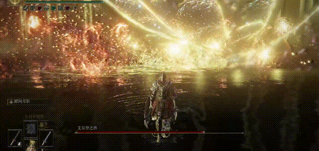 艾尔登之光产生前地面会缩两次圈,圈内为艾尔登之光攻击范围,这时要一直跑,注意不要被圈打到,虽然不会受伤但会被打出硬直,很容易被艾尔登之光命中