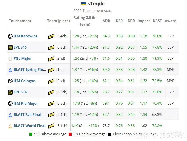 2022年,s1mple收获了5个EVP和2个MVP,同时帮助NAVI赢得了一项大赛冠军,两次打进精英赛事的决赛。这也使他成为第一位三次被评为HLTV的年度最佳选手。